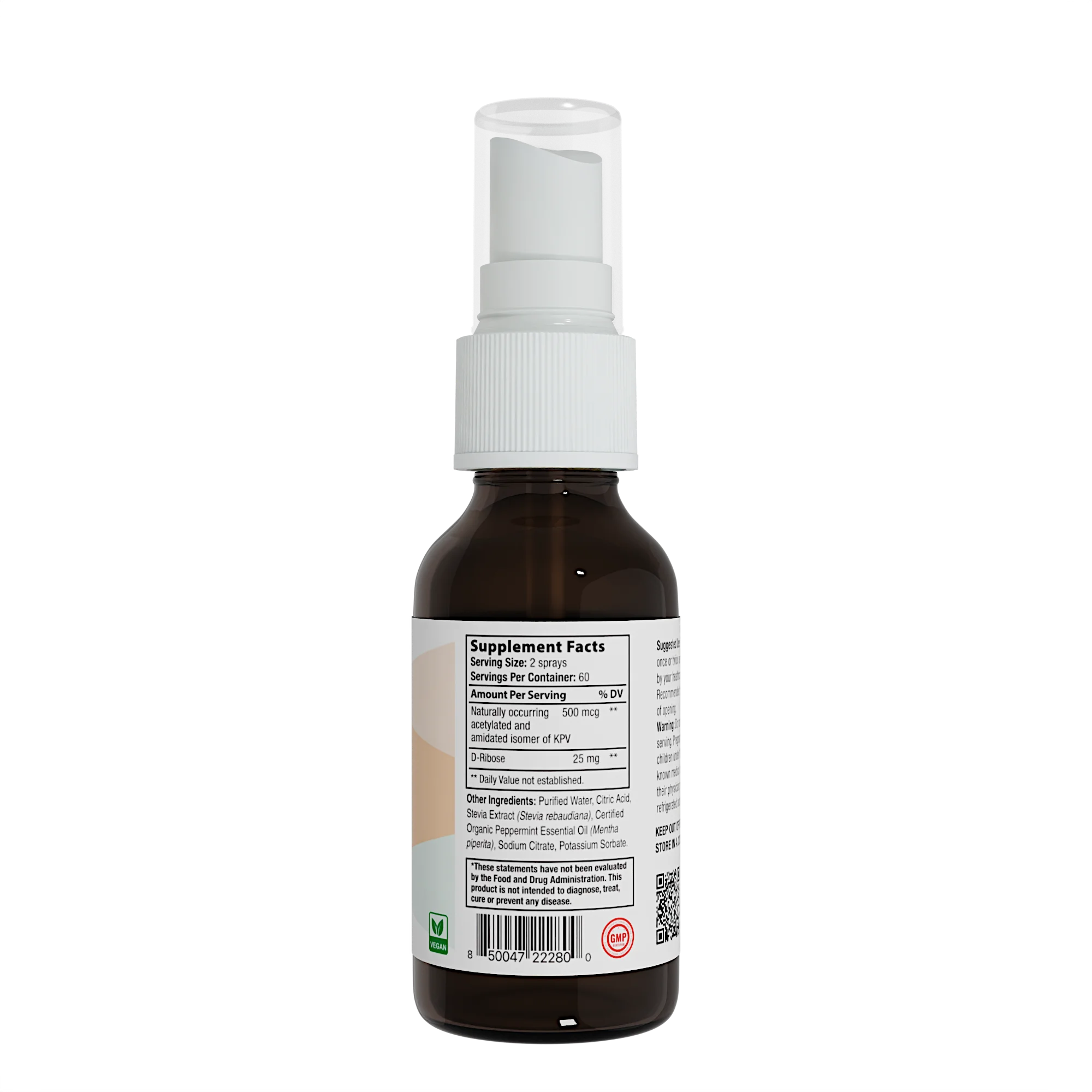 KPV Ultra Oral Peptide Spray KPV Ultra Oral Peptide Spray is formulated with an acetylated and amidated isomer of the naturally occurring tripeptide KPV (lysine – proline – valine). The spray format provides a convenient oral delivery option for individuals seeking a peptide-based supplement in a light, peppermint-flavored mist. The active peptide is combined with a simple, transparent ingredient list including D-ribose, purified water, citric acid, and certified organic peppermint essential oil to support ease of use and palatability. KPV Ultra does not contain stimulants or pharmaceutical ingredients. This product is not intended for use as a drug, prescription product, or therapeutic treatment.