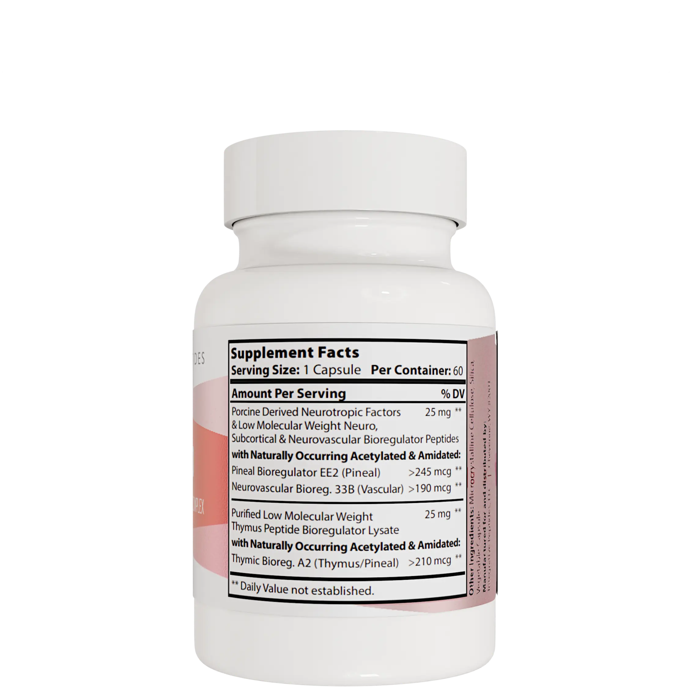PinealPep is a porcine-derived peptide formulation featuring low molecular weight bioregulator components. It includes naturally acetylated and amidated peptide sequences of interest in scientific research related to neurobiological and pineal-region studies. The product is offered in a convenient capsule format as part of Integrative Peptides’ neuro-focused portfolio.